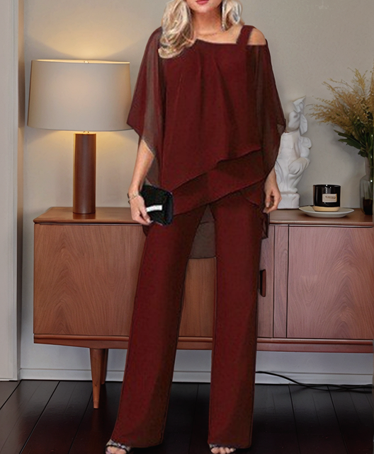 💋HOT SALE 49% OFF💋Loose and irregular Shoulder Ruffled Tiered Top and Pants Two Piece Set