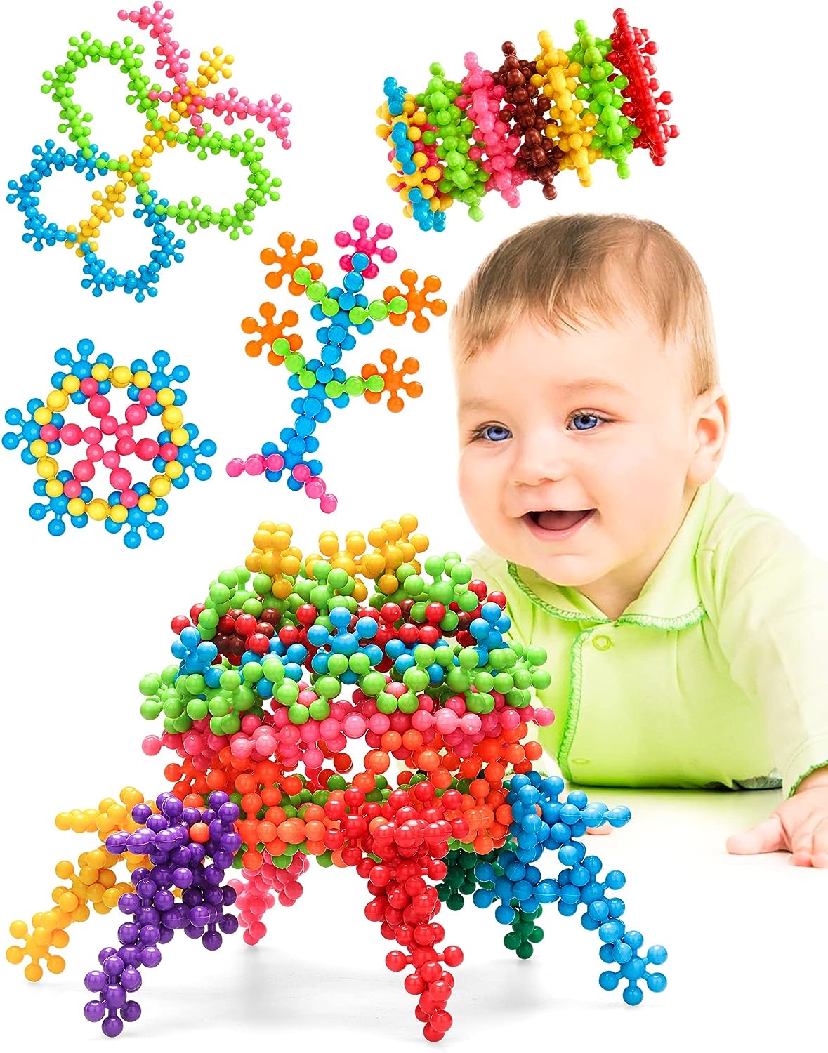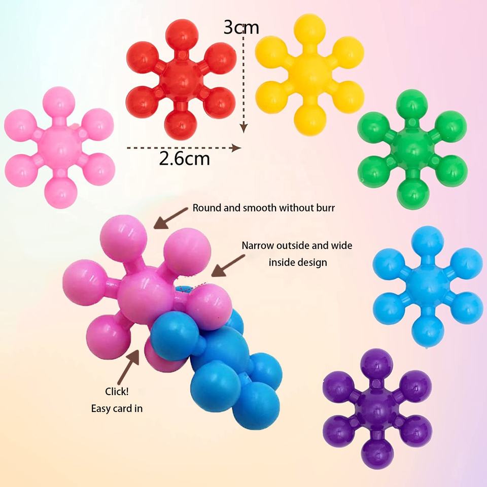 💨【Cognitive Development】Colorful snowflake-shaped plastic blocks are designed to interlock easily, so the little ones can make all kinds of crazy creations. The blocks are available in bold colors: pink, red, orange, yellow, light green, dark green, light blue and dark blue.