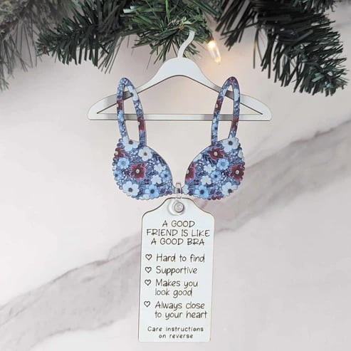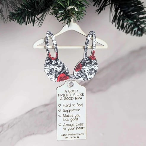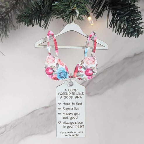 Tired of boring ornaments? This year, celebrate the friend who literally “holds you up” with our hilariously heartfelt "A Good Friend is like a Good Bra" ornament!