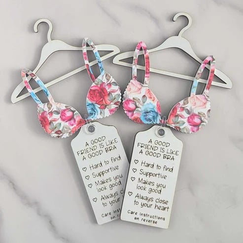 ✨ Handmade Wooden Bra Ornament - Signable Back for a Personal Touch! Unique Best Friend Gift 🎁
