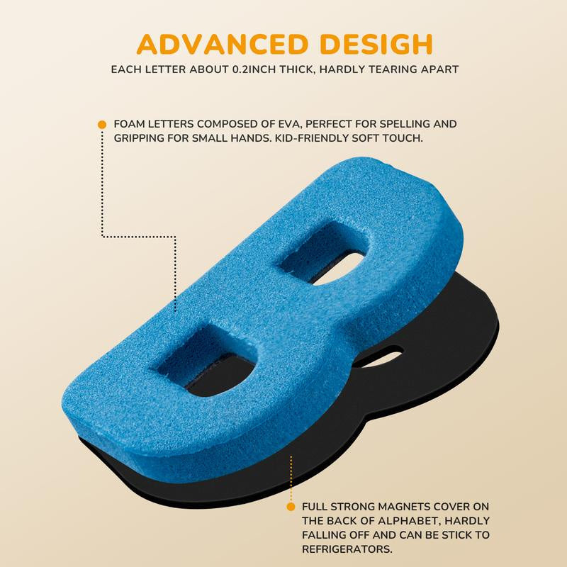 Crafted from eco-friendly EVA and soft magnets, these letters are both durable and safe for kids. The rounded corners provide extra safety, and they are completely washable for easy maintenance after messy play sessions.
