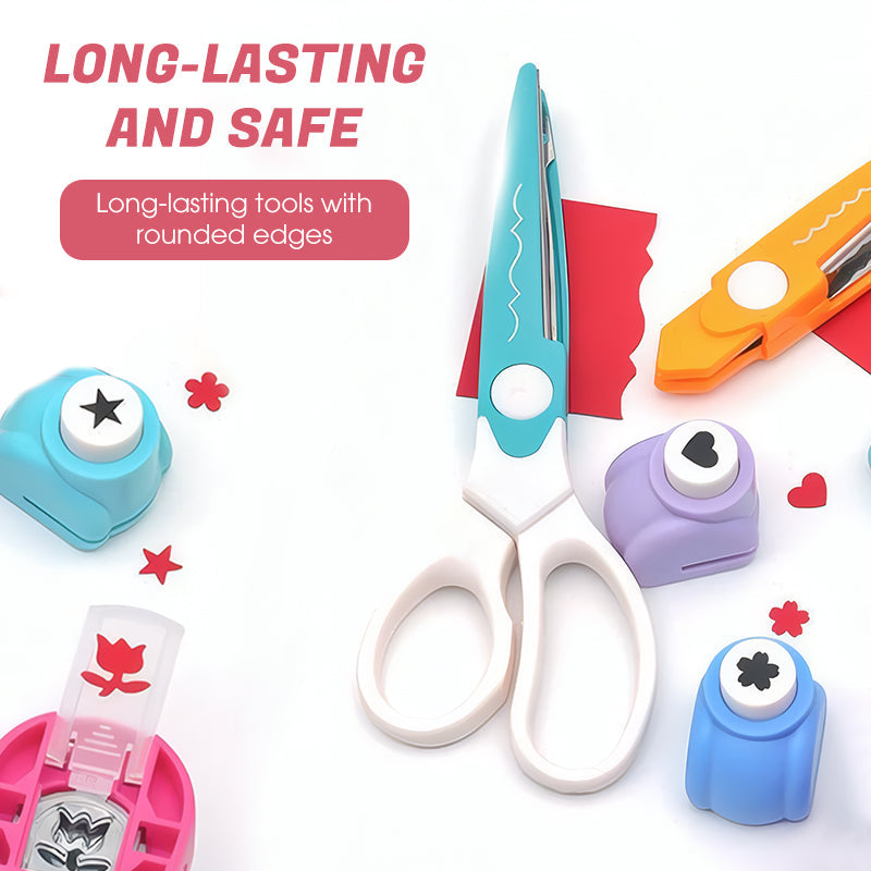 DURABLE & SAFE - Made from sturdy materials, the punches press smoothly and the scissors stay sharp. Safety was a top priority in the design, with rounded edges on the scissors to help prevent accidents, making them suitable for kids under supervision. This set is built to last, so you can enjoy many crafting sessions without worrying about wear or breakage.