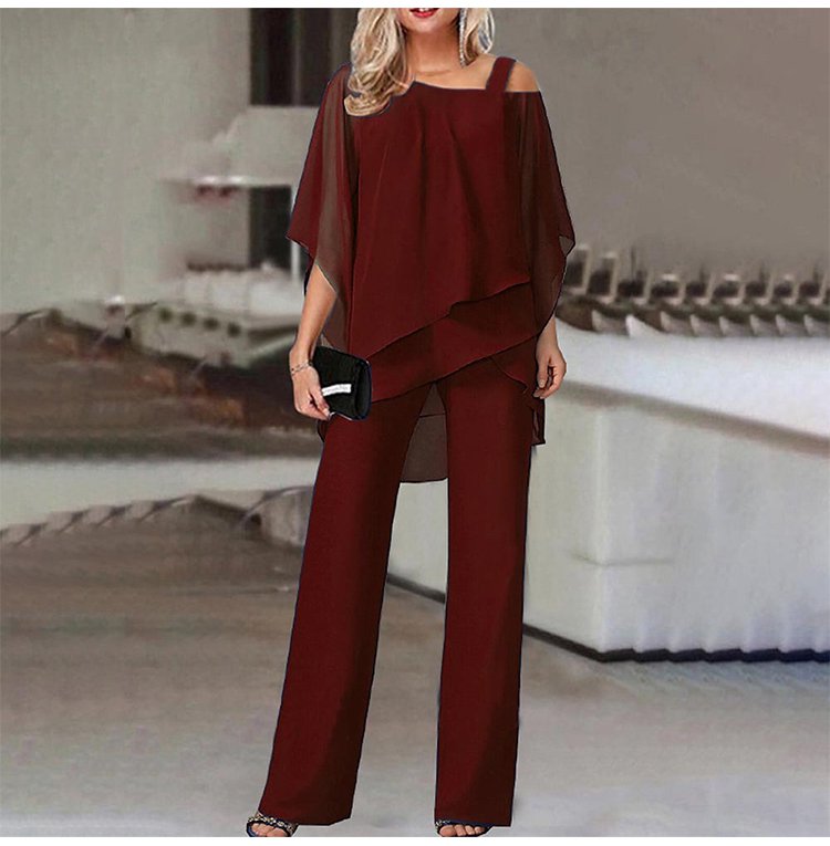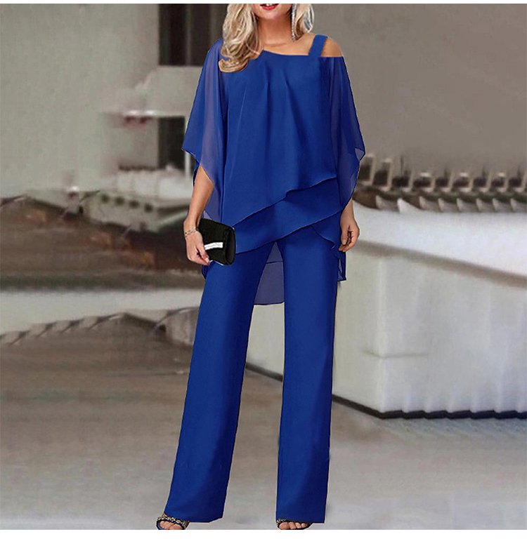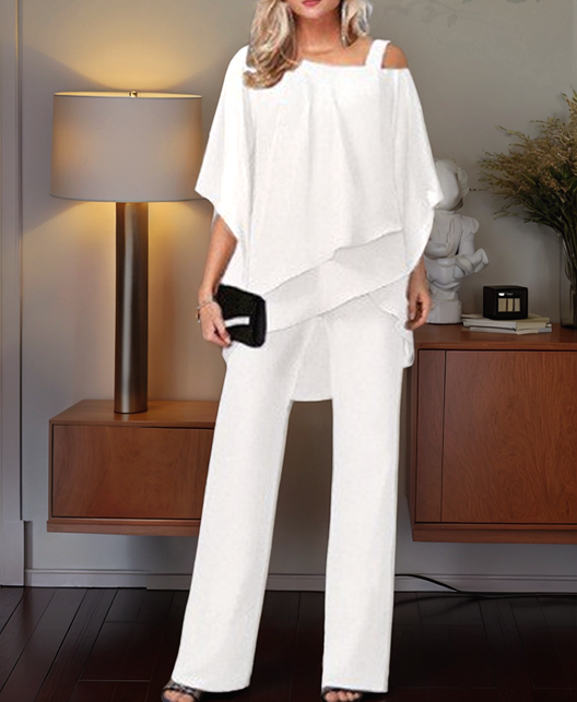 💋HOT SALE 49% OFF💋Loose and irregular Shoulder Ruffled Tiered Top and Pants Two Piece Set