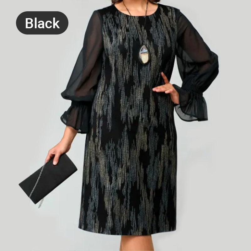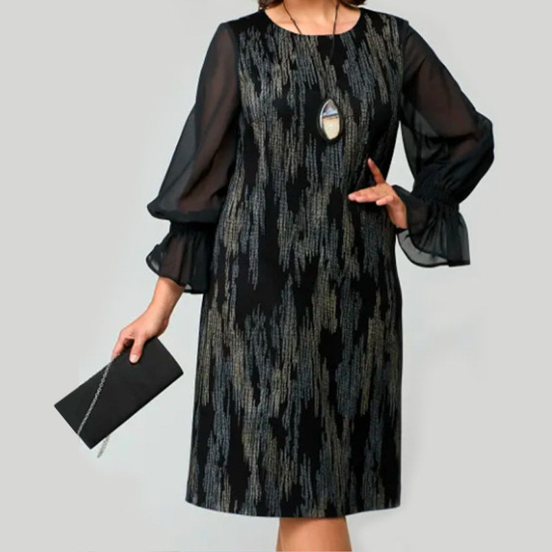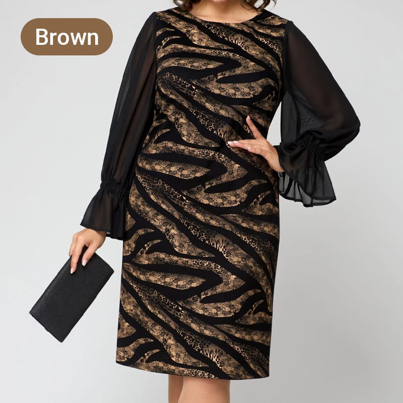 💃Last Day Sales - 49% OFF🎉Women's Mesh Long Sleeve Round-Neck Printed Dress