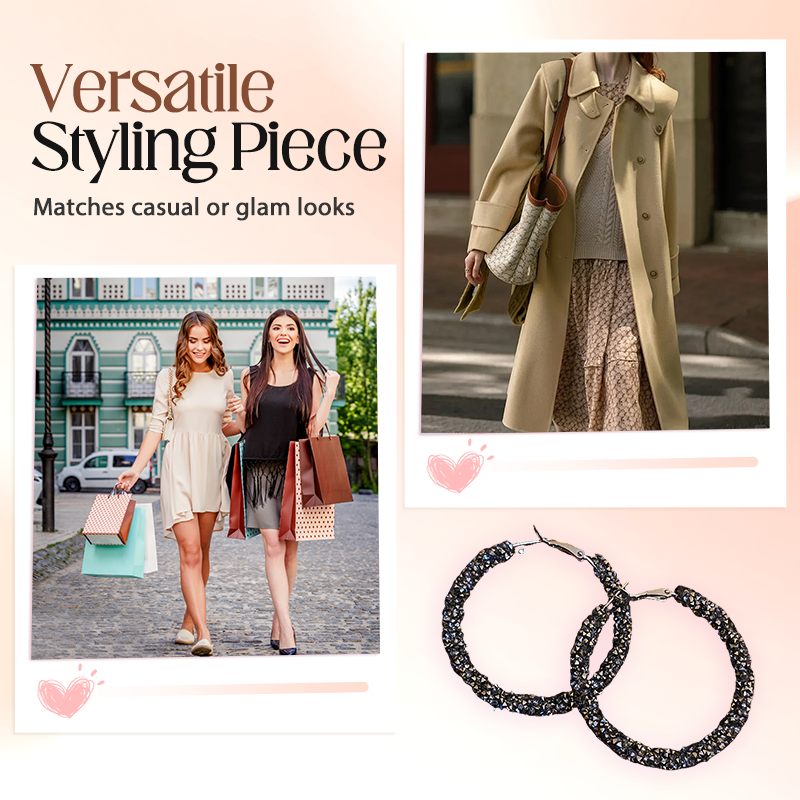 SPARKLE WITH CONFIDENCE – Radiate elegance day or night. These large hoop earrings are adorned with shimmering synthetic diamonds that catch light from every angle, making them the perfect finishing touch for both casual brunches and upscale evenings. Their brilliance adds instant glamour without overpowering your outfit, striking a fine balance between bold and beautiful.