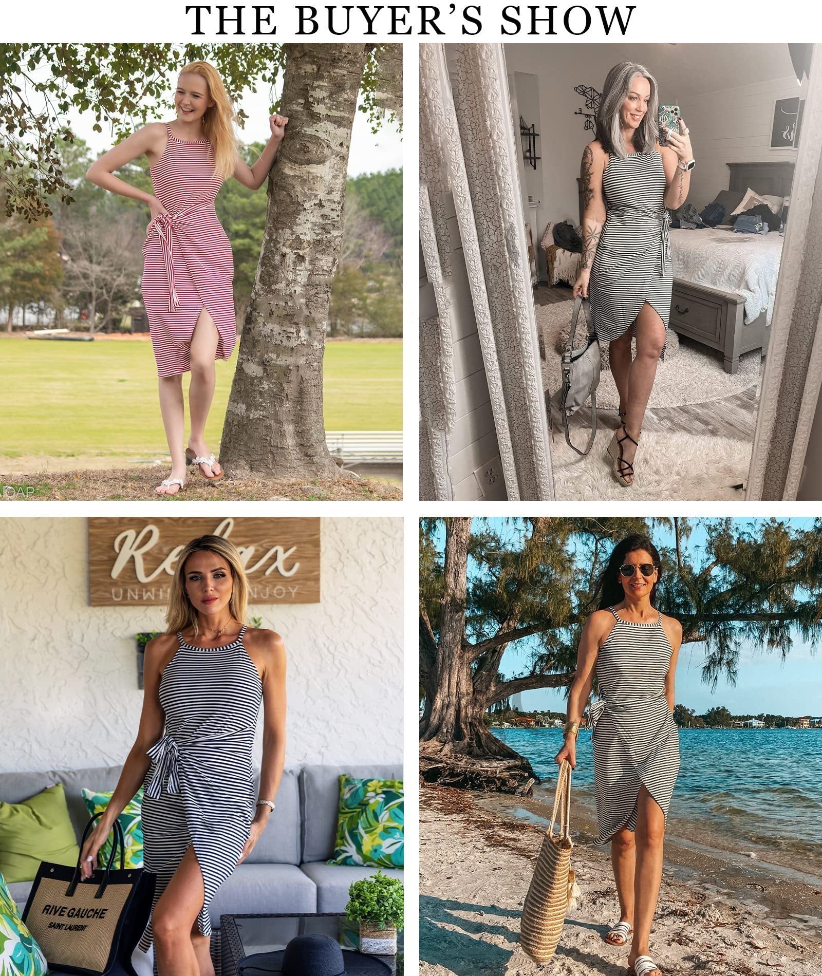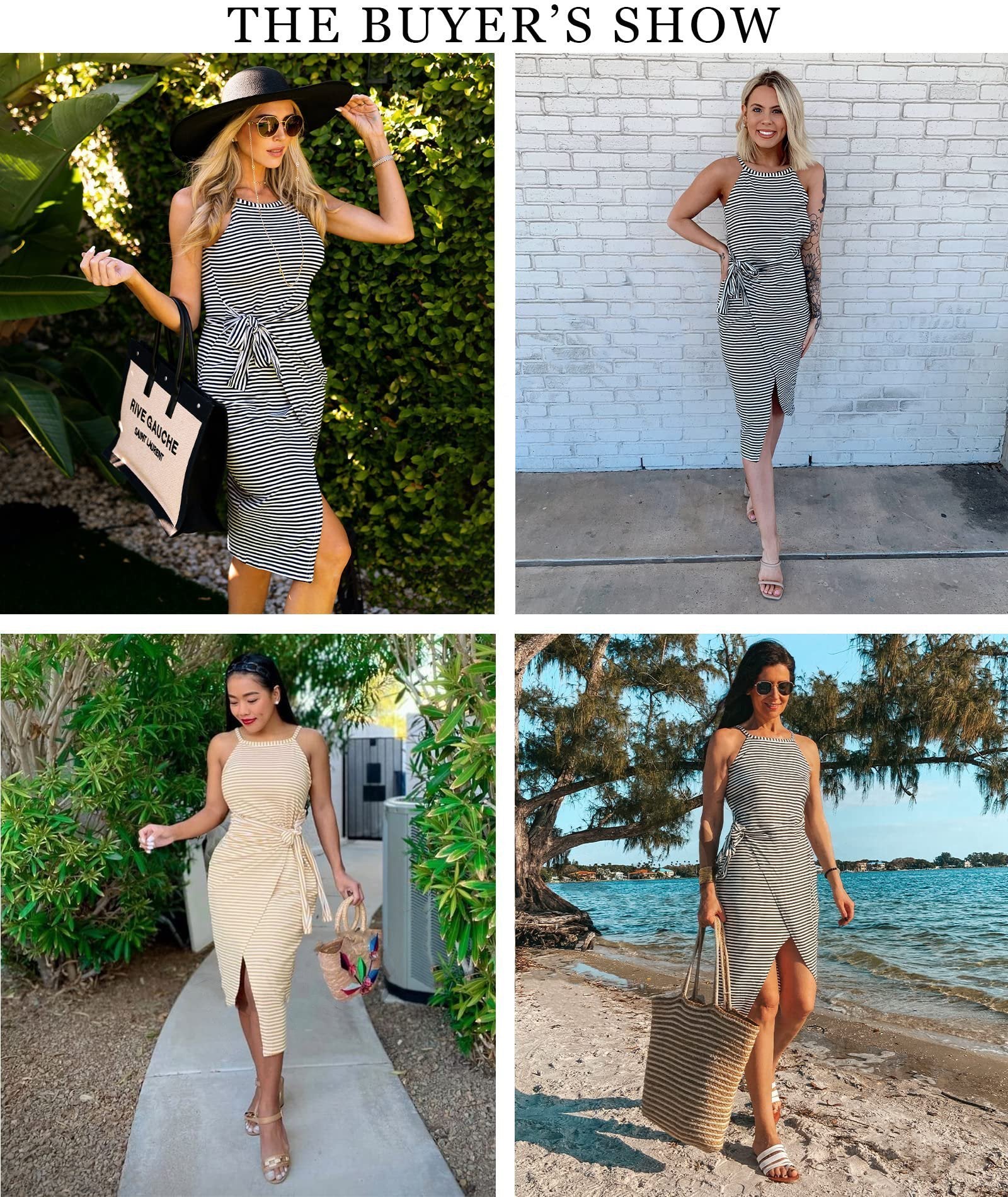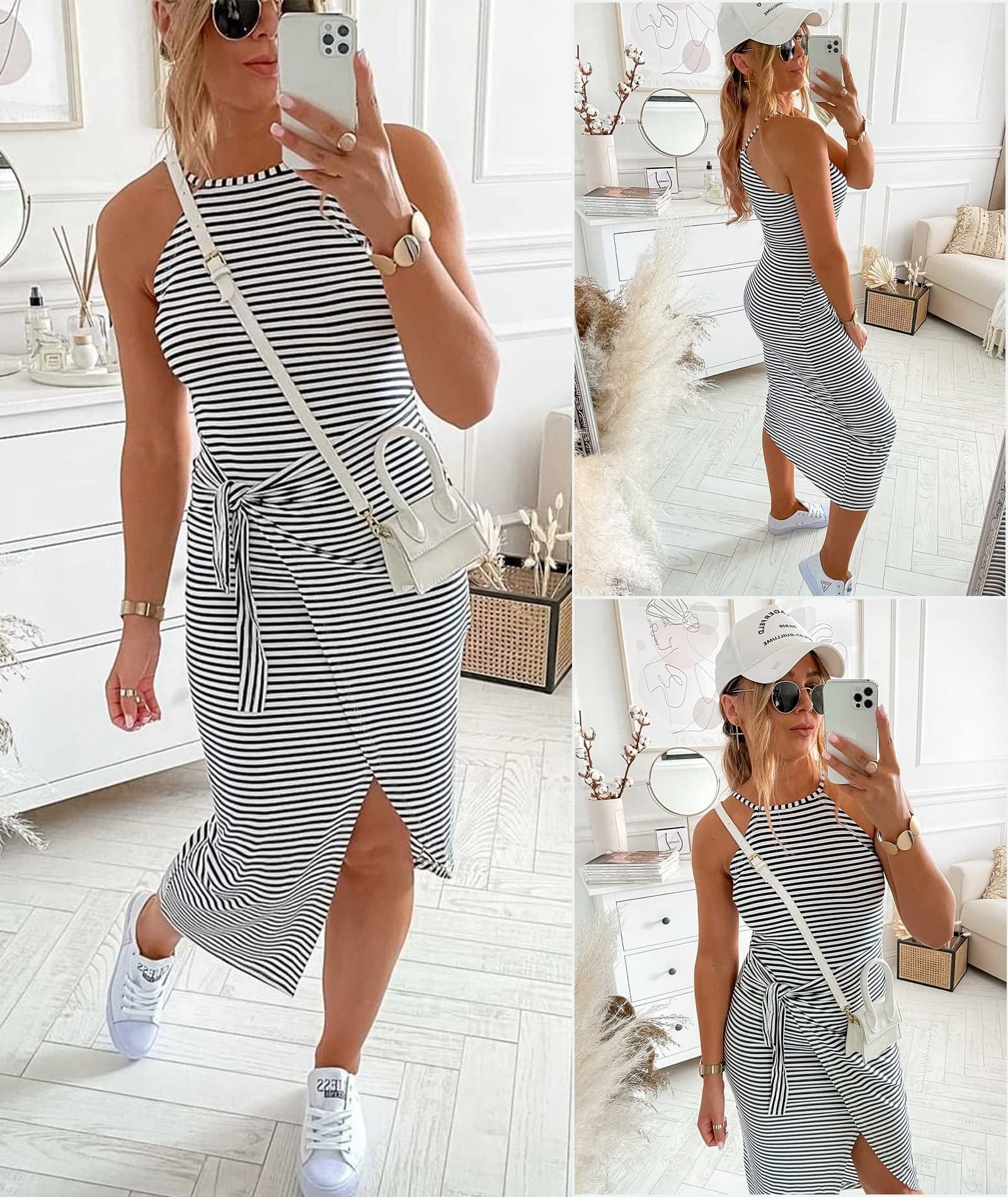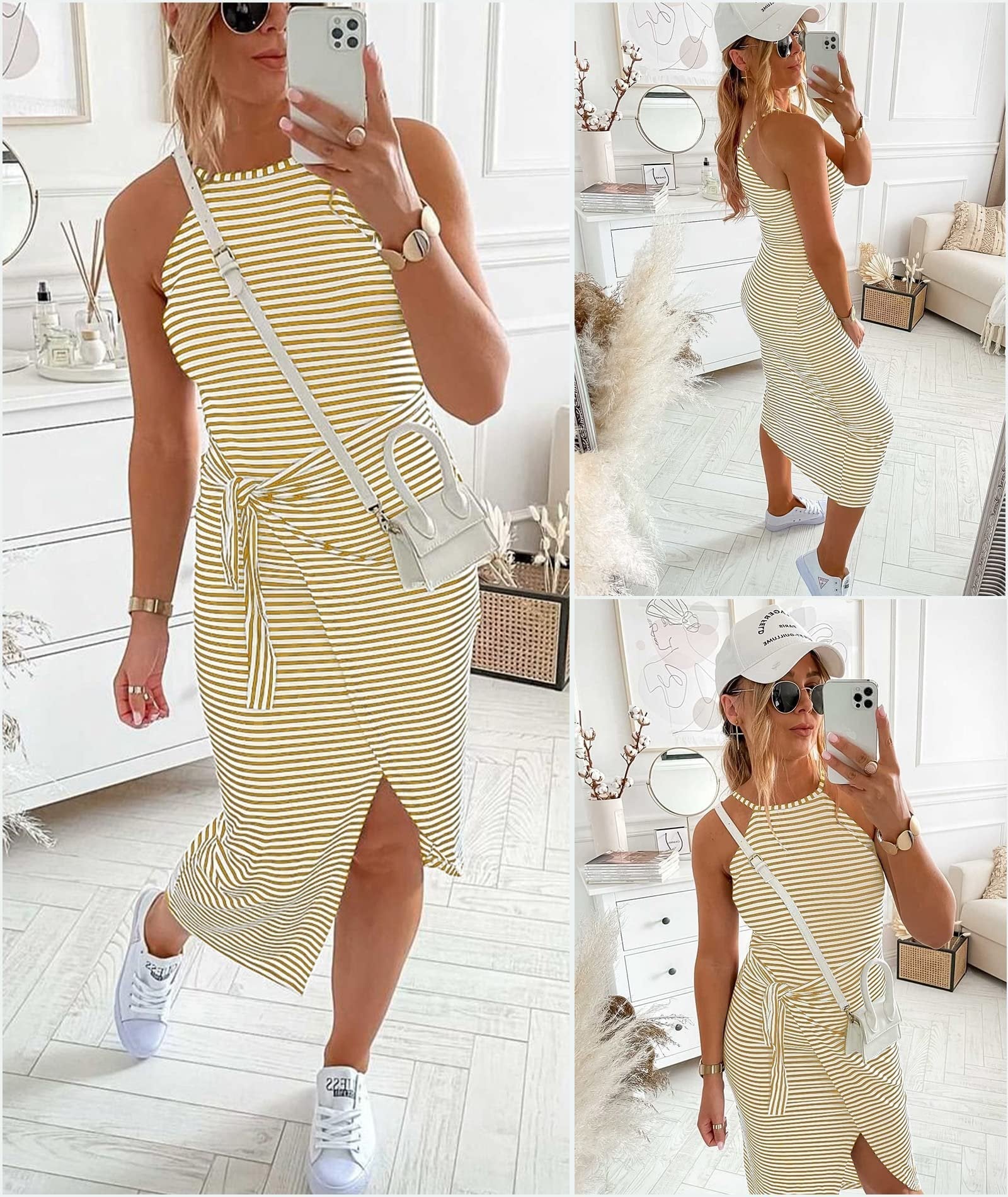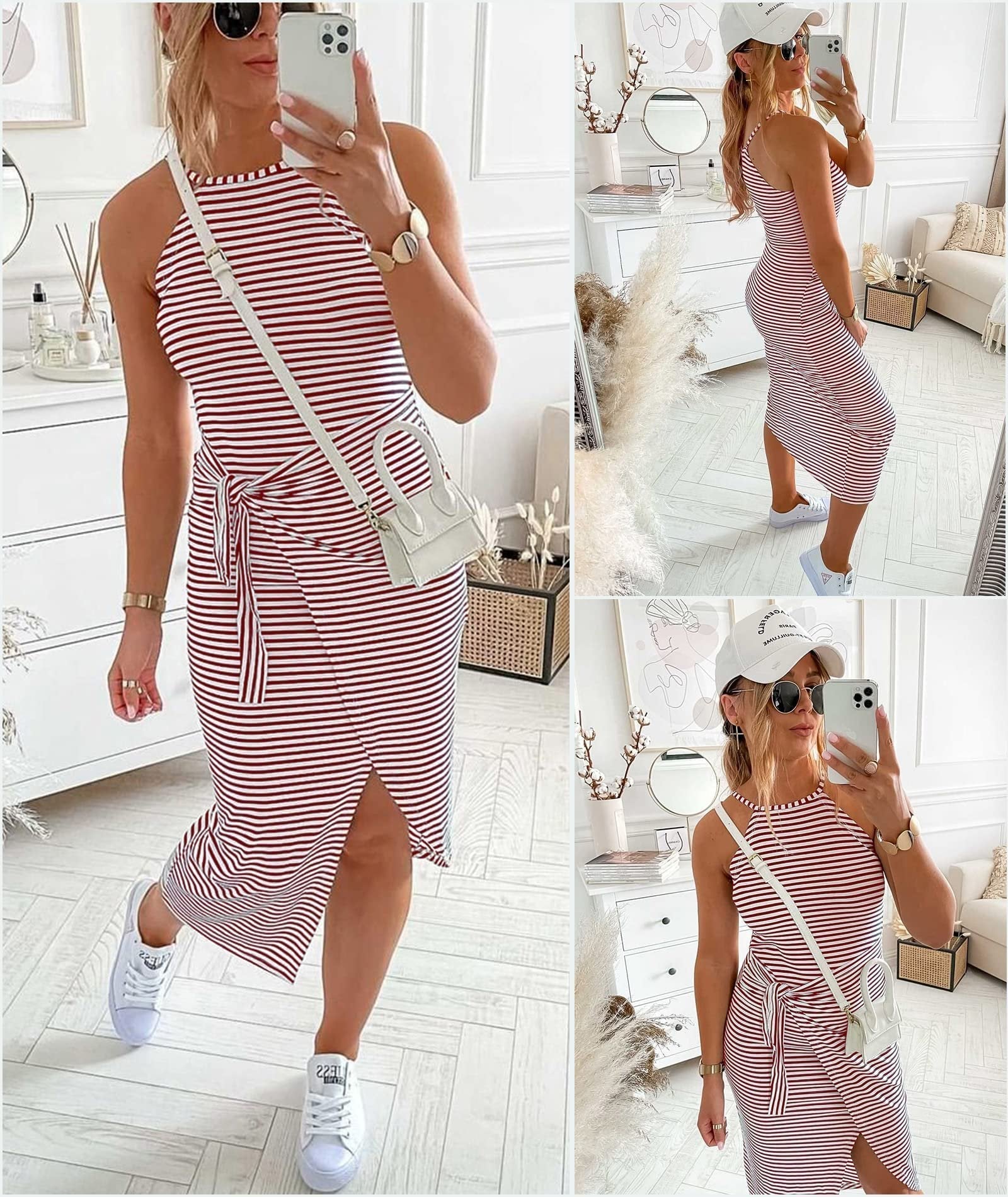 - 1 x Casual Sleeveless Striped Midi Dresses